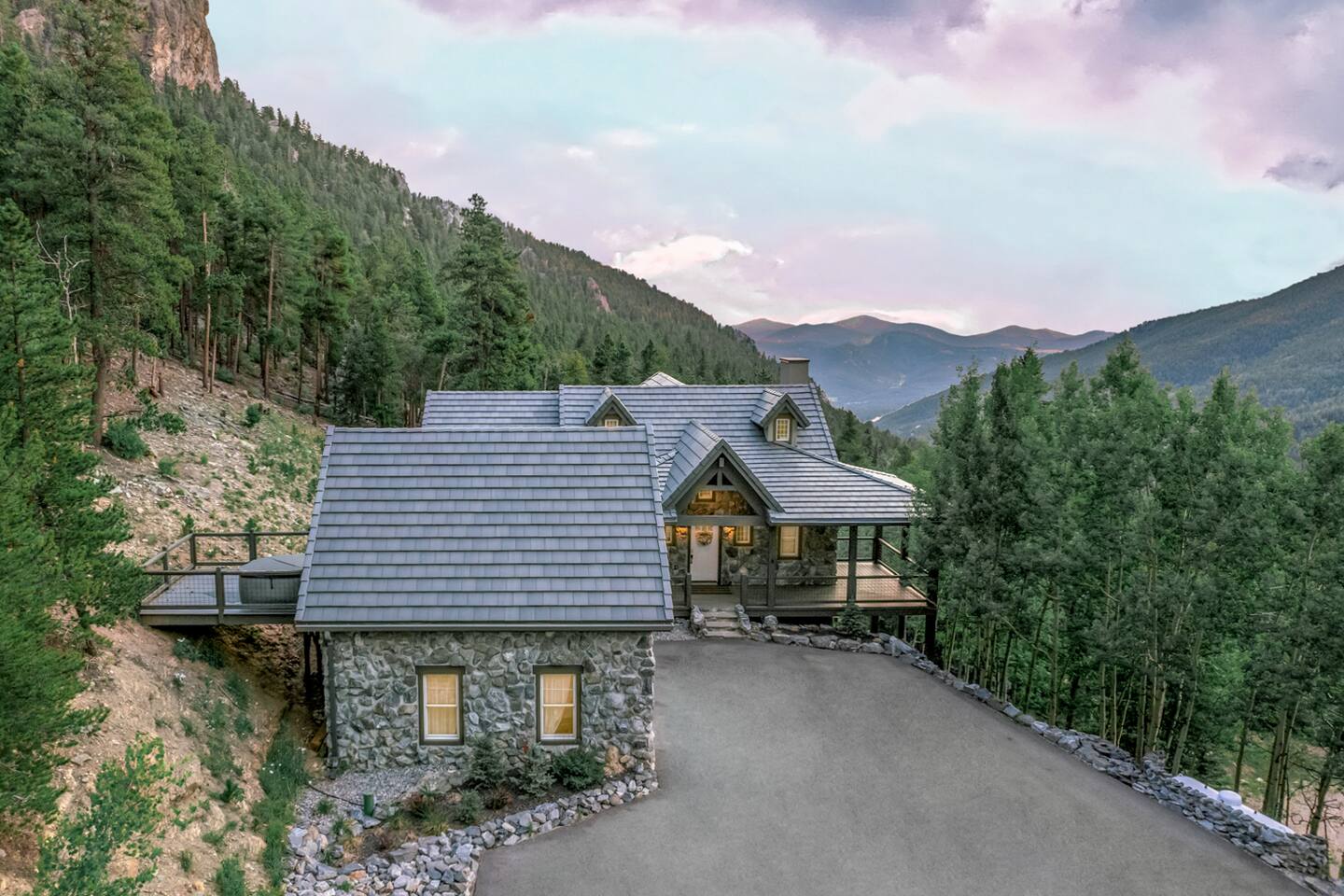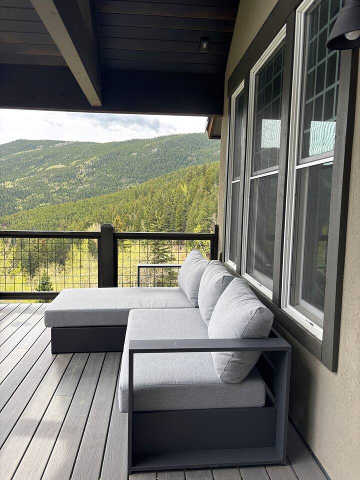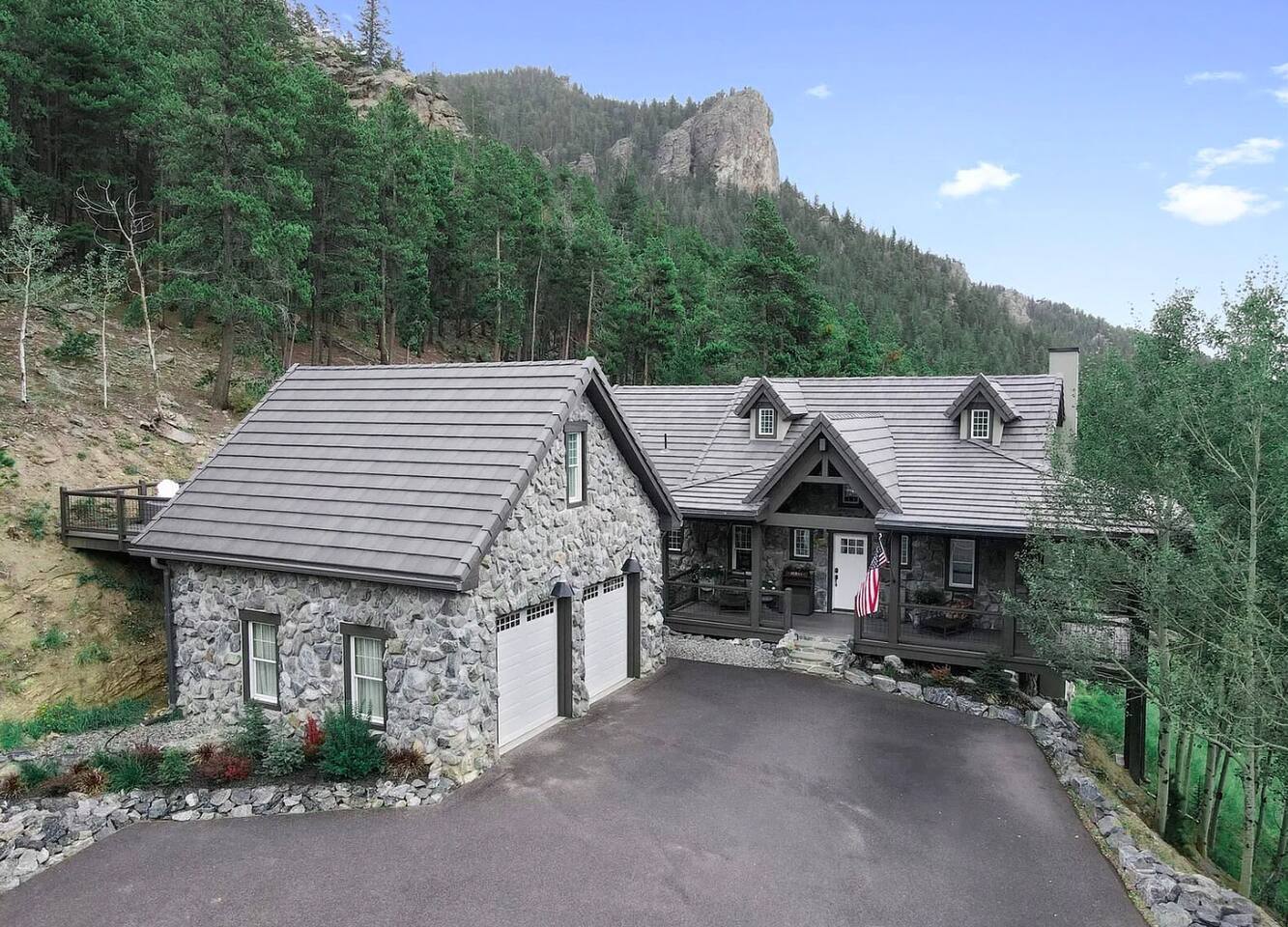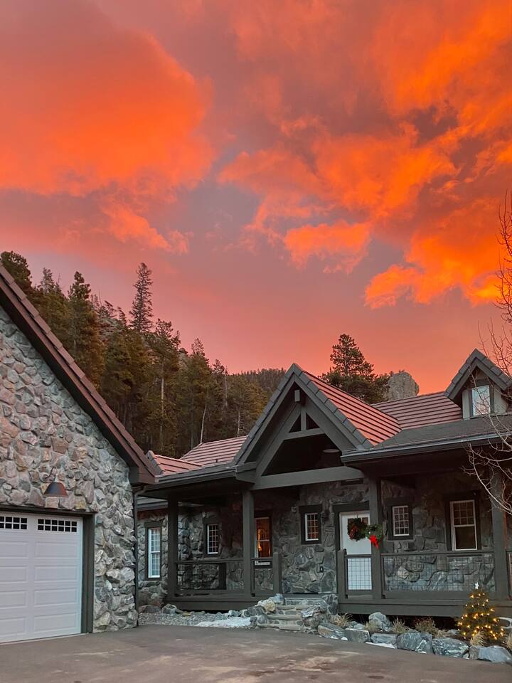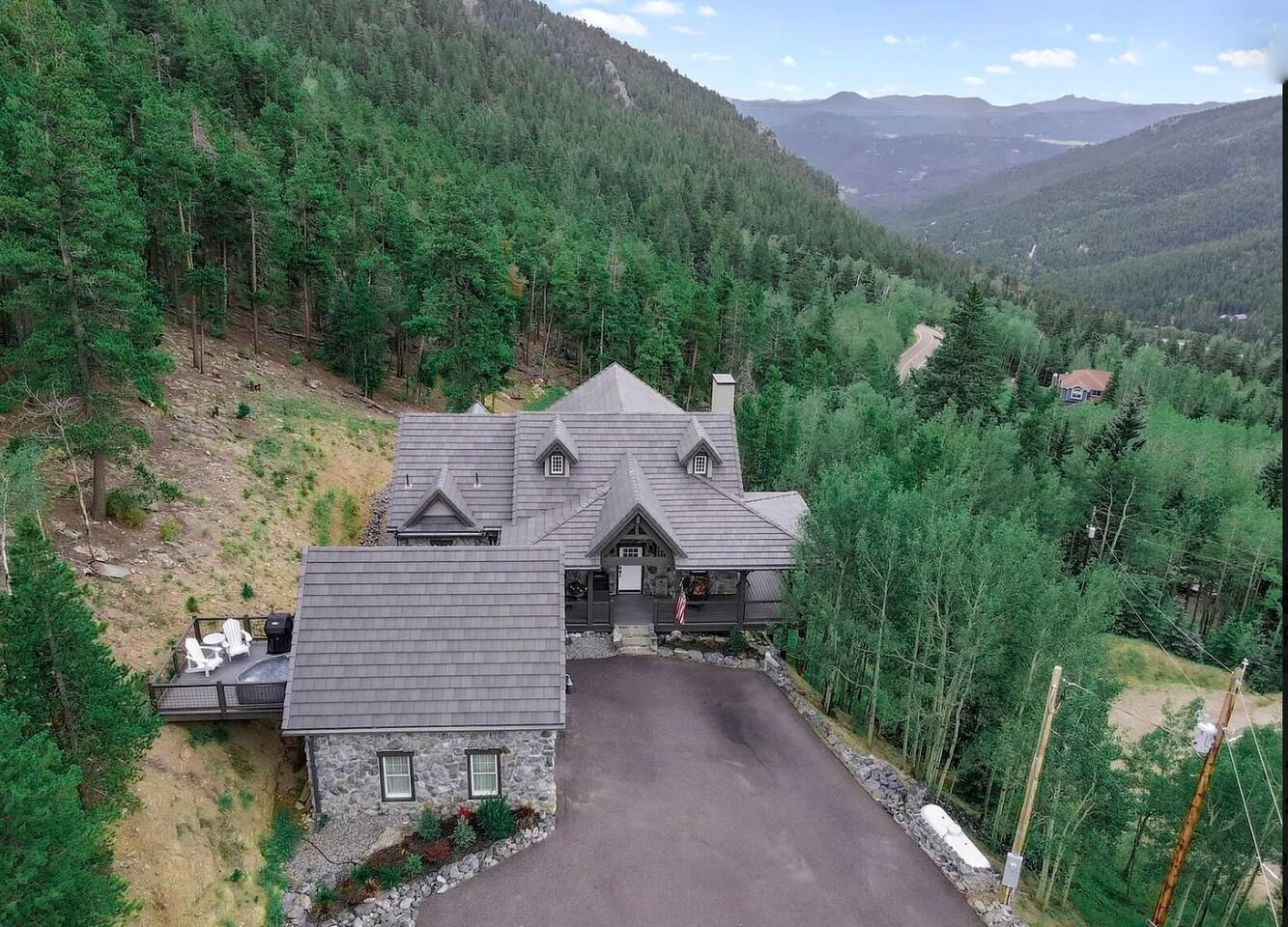 - Proud to be named in the top 1% of homes on Airbnb This is a newer construction (2016), custom built home with all new furniture, and it will feel clean, comfy, and luxurious for your mountain getaway. ★★★★★"Truly the most phenomenal Airbnb I've ever stayed at.”- Laura +Take a deep breath of fresh mountain air from our charming stone cabin at 9,000 feet! Pour your morning cup of coffee and enjoy the stunning views from your own private Trex deck balcony - 6-Person New Luxury Saltwater Hot Tub AKA wellness recharging oasis with ozone to rejuvenate after a day of hiking or skiing - A pristine, newer build property infused with authentic cozy Colorado character, expertly handcrafted by a master stonemason - 2 Living/Family Room spaces with crisp clean comfy leather couches, TV, fireplace, VIEW. For making memories separately from time to time but still together. - Your sleep sanctuary: 3 Kings with new mattresses, each bedroom has own bathroom, crisp white cotton luxury Brooklinen and Parachute linens, fluffy towels for a touch of that nice, hotel feel and blackout curtains. We believe sleep on vacation is just as important as your outdoor adventuring - 2 of the 3 bedrooms are primary suites on separate floors. Primary suite 1 is on the upper level, primary suite 2 is on the lower level. - 2 fireplaces + hardwood hand rubbed oak and travertine floors for the quintessential mountain cabin experience - BBQ Grill with outdoor dining table for cozy mountain meals ★★★★★ "The beds, linens, and comfort of this place is far superior compared to other stays." - Sonja - Create memories with the ones you love: near incredible hiking, whitewater rafting, paddle boarding, ziplining, and cycling. - Home was seen in a national television show! (see photos;) ★★★★★ "Phenomenal views." - Colin Location, Location, Location. The best of what Colorado has to offer, in Evergreen, Colorado & near all the fun: —> 3 min walk to National Park trails & hiking. Property backs National Park land so it feels like you're constantly forest bathing —> 10 min drive to Echo Mountain for ski & tubing (typically opens late November/Early December - weather dependent, check their website for updates). —> 15 mins to Downtown Evergreen (restaurants, winery, paddle board on Evergreen Lake, and Muddy Buck Cafe soon to be featured in a Hallmark movie) —>15 mins to the famous TallGrass Aveda Spa & Salon (Willie Nelson once lived across the street) —> 15 mins to Echo Lake and Mt. Blue Sky (formerly Mt. Evans), Colorado's highest byway AND the highest paved road in North America (check website - typically open Memorial Day through Labor Day) —> 30 mins to Red Rocks & Morrison (see a show, hike) —> 30 mins to Golden (charming downtown w/shops, eats, tubing, Coors Brewery) —> 30 mins to Idaho Springs (lesser known but very fun mountain town! shop, eat, zipline, hike, whitewater raft, Argo Gold Mine, St. Mary's Glacier) —> 40 mins to Denver (see live music, Meow Wolf, Clyfford Still museum, conferences, Rockies, Broncos) —> 40 mins to LoDO —> 50 mins to the world class Loveland ski area —> 1 hour to Denver International Airport —> 1 hr 10 mins to Breckenridge —> 1 hr 30 mins to Rocky Mountain National Park —> 1 hr 30 mins to Estes Park —> No highway noise in our peaceful mountain nature sounds loving residential neighborhood ★★★★★ "A truly spectacular experience." - Reimund Many of our guests come to Stone Peak to celebrate a special occasion like an anniversary or birthday, to reconnect with adult children, to disconnect and relax for a week, for a romantic getaway, to see a Red Rocks show, or to catch up with old friends. It's a special place. :::: LAYOUT :::: —>Main Level: 1BR w/King, Kitchen, Dining Area, Living Room #1 —>Lower Level: 2BRs w/Kings, Living Room #2, 2 twin rollaway beds —>2 of the 3 bedrooms are spacious primaries with ensuite full bathrooms, the 3rd bedroom has its own full bathroom across the hall - see floor plan in photos. ★★★★★ "You actually get to live like a millionaire..." - William :::: THE SPACE :::: —> Lounge in the open concept upstairs living/dining/kitchen area —> Double decks overlooking the mountains with outdoor dining + zero gravity hanging chairs + Adirondack chairs —> 55” Smart TV in upper level living room, 65" TV in lower level family room and a TV in every bedroom. All TVs are smart (nay, brilliant!;) so you can log in to your own favorite streaming service accounts —>Family-friendly with a Pack 'n Play, high chair, baby safety gate for the downstairs, children's books & toys —> The dining area seats 8 + 3 comfy kitchen counter stools. The kitchen includes soapstone countertops, hardwood cabinets, eco-friendly PFOS and PFOA free White Granite cooking set with saucepans and frying pans —> Stay hydrated easily with our Berkey Water filter! —> Coffee connoisseur? Nespresso Vertuo Machine with enough pods to get you started, Chemex + gooseneck hot water kettle, and Mr. Coffee —> Like to cook? Instant pot, Ninja blender, spices and oils, hand mixer, baking sheets and pans —> Games, puzzles, PS5 gaming console for the kids & kids at heart —> Home professionally cleaned using CDC standards ★★★★★"This property is spectacular!”- Maureen :::: Additional AMENITIES :::: LAUNDRY: Washer and Dryer + Detergent pods are provided HEATING & COOLING: You’ll stay cozy with our Nest smart thermostat. Like most mountain homes, we do not have AC. At 9,000 feet we're generally 20 degrees cooler than Denver. Even as a newer build, AC wasn't installed because it's generally not needed TOILETRIES: Premium toiletries provided (shampoo, conditioner, body wash) TECH: Bring your work if you must - it’s the ultimate getaway setting for the remote work lifestyle, and you’ll stay connected with high speed wifi (60 Mbps). Foldup desk available if you need to take a private work Zoom ★★★★★ "Me