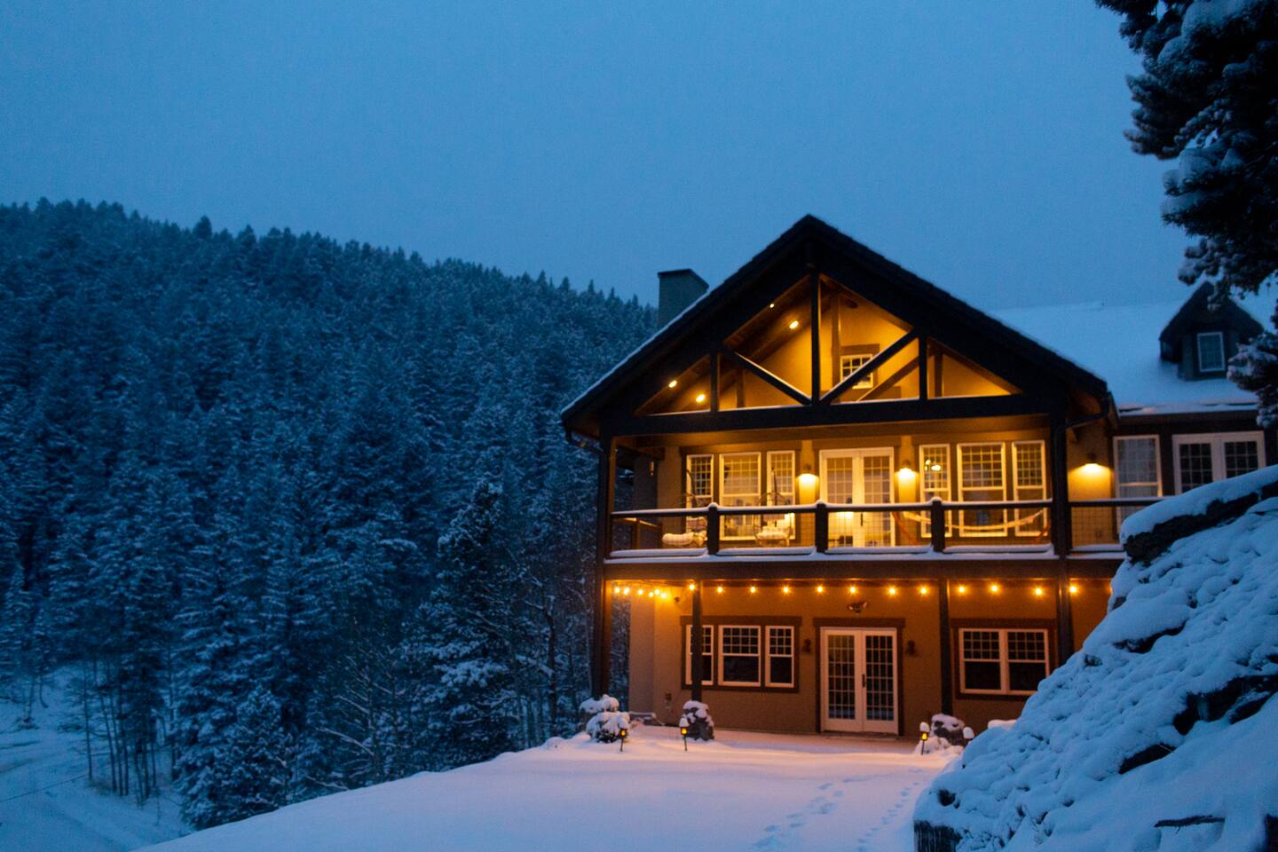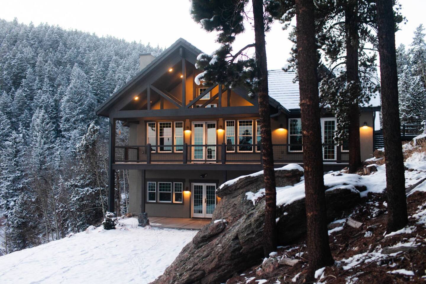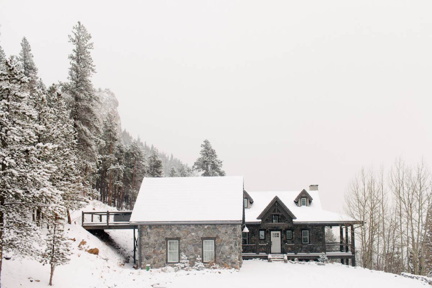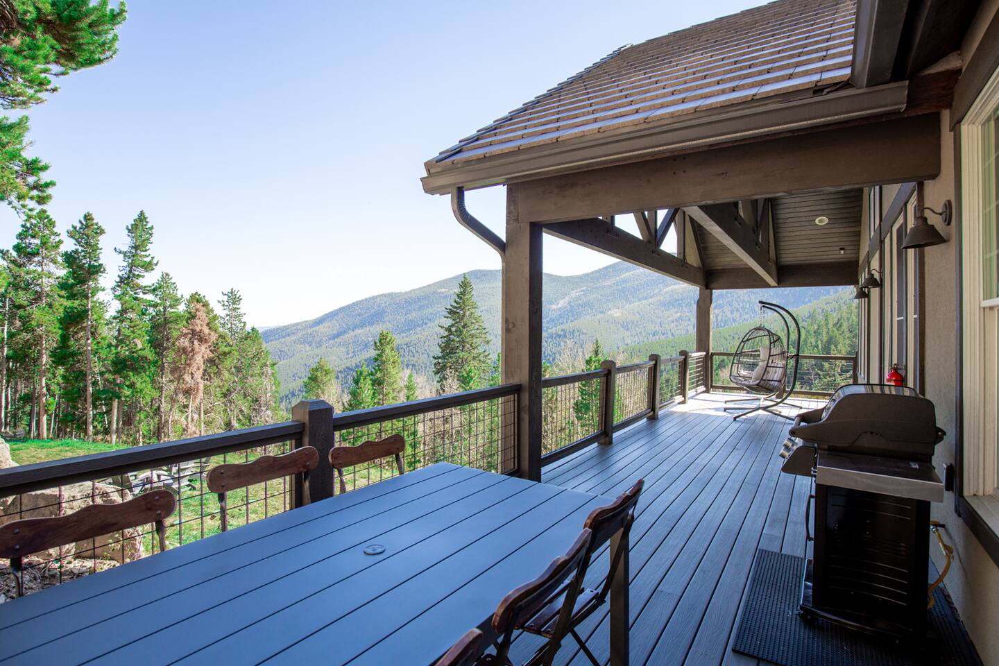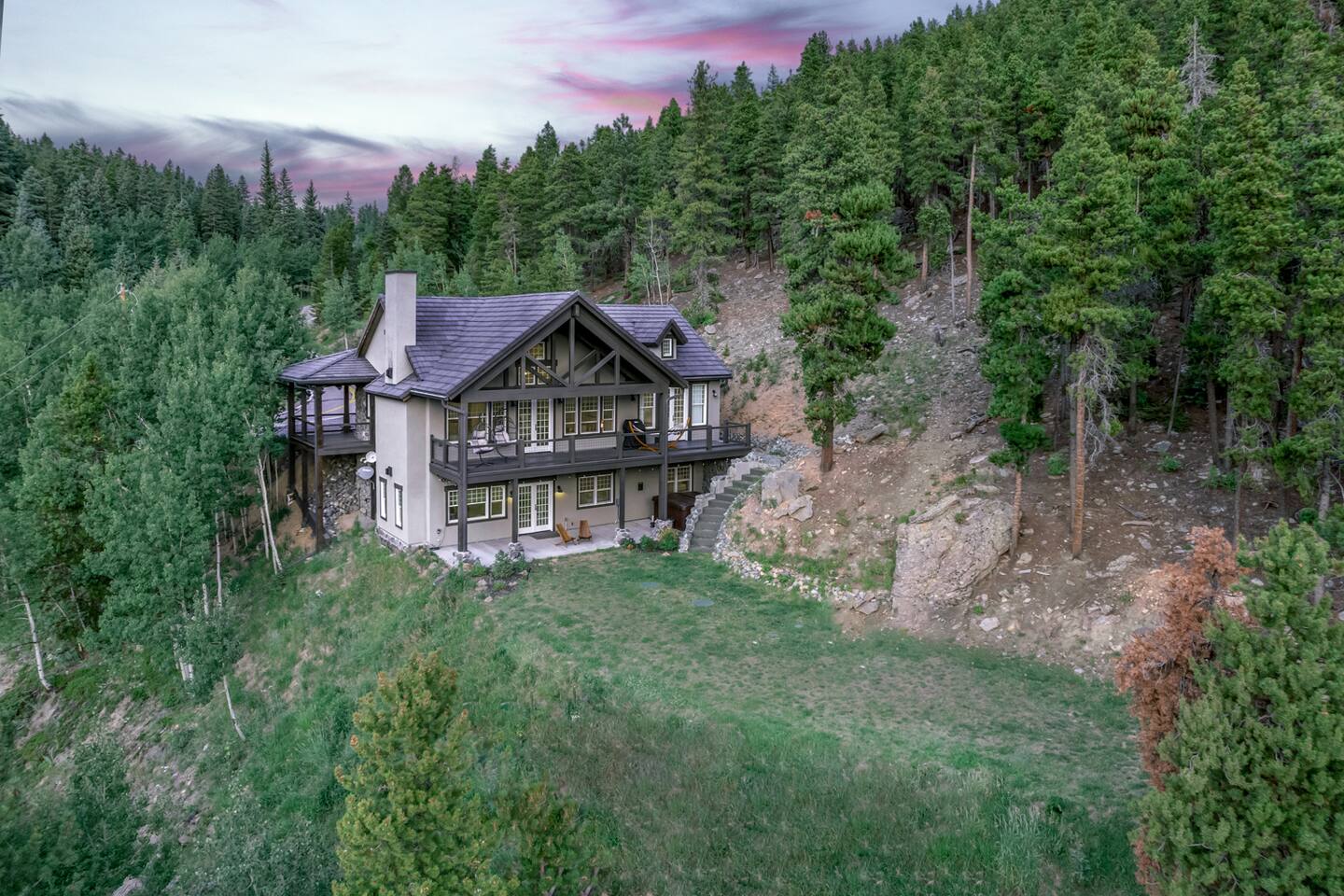 - Proud to be named in the top 1% of homes on Airbnb This is a newer construction (2016), custom built home with all new furniture, and it will feel clean, comfy, and luxurious for your mountain getaway. ★★★★★"Truly the most phenomenal Airbnb I've ever stayed at.”- Laura +Take a deep breath of fresh mountain air from our charming stone cabin at 9,000 feet! Pour your morning cup of coffee and enjoy the stunning views from your own private Trex deck balcony - 6-Person New Luxury Saltwater Hot Tub AKA wellness recharging oasis with ozone to rejuvenate after a day of hiking or skiing - A pristine, newer build property infused with authentic cozy Colorado character, expertly handcrafted by a master stonemason - 2 Living/Family Room spaces with crisp clean comfy leather couches, TV, fireplace, VIEW. For making memories separately from time to time but still together. - Your sleep sanctuary: 3 Kings with new mattresses, each bedroom has own bathroom, crisp white cotton luxury Brooklinen and Parachute linens, fluffy towels for a touch of that nice, hotel feel and blackout curtains. We believe sleep on vacation is just as important as your outdoor adventuring - 2 of the 3 bedrooms are primary suites on separate floors. Primary suite 1 is on the upper level, primary suite 2 is on the lower level. - 2 fireplaces + hardwood hand rubbed oak and travertine floors for the quintessential mountain cabin experience - BBQ Grill with outdoor dining table for cozy mountain meals ★★★★★ "The beds, linens, and comfort of this place is far superior compared to other stays." - Sonja - Create memories with the ones you love: near incredible hiking, whitewater rafting, paddle boarding, ziplining, and cycling. - Home was seen in a national television show! (see photos;) ★★★★★ "Phenomenal views." - Colin Location, Location, Location. The best of what Colorado has to offer, in Evergreen, Colorado & near all the fun: —> 3 min walk to National Park trails & hiking. Property backs National Park land so it feels like you're constantly forest bathing —> 10 min drive to Echo Mountain for ski & tubing (typically opens late November/Early December - weather dependent, check their website for updates). —> 15 mins to Downtown Evergreen (restaurants, winery, paddle board on Evergreen Lake, and Muddy Buck Cafe soon to be featured in a Hallmark movie) —>15 mins to the famous TallGrass Aveda Spa & Salon (Willie Nelson once lived across the street) —> 15 mins to Echo Lake and Mt. Blue Sky (formerly Mt. Evans), Colorado's highest byway AND the highest paved road in North America (check website - typically open Memorial Day through Labor Day) —> 30 mins to Red Rocks & Morrison (see a show, hike) —> 30 mins to Golden (charming downtown w/shops, eats, tubing, Coors Brewery) —> 30 mins to Idaho Springs (lesser known but very fun mountain town! shop, eat, zipline, hike, whitewater raft, Argo Gold Mine, St. Mary's Glacier) —> 40 mins to Denver (see live music, Meow Wolf, Clyfford Still museum, conferences, Rockies, Broncos) —> 40 mins to LoDO —> 50 mins to the world class Loveland ski area —> 1 hour to Denver International Airport —> 1 hr 10 mins to Breckenridge —> 1 hr 30 mins to Rocky Mountain National Park —> 1 hr 30 mins to Estes Park —> No highway noise in our peaceful mountain nature sounds loving residential neighborhood ★★★★★ "A truly spectacular experience." - Reimund Many of our guests come to Stone Peak to celebrate a special occasion like an anniversary or birthday, to reconnect with adult children, to disconnect and relax for a week, for a romantic getaway, to see a Red Rocks show, or to catch up with old friends. It's a special place. :::: LAYOUT :::: —>Main Level: 1BR w/King, Kitchen, Dining Area, Living Room #1 —>Lower Level: 2BRs w/Kings, Living Room #2, 2 twin rollaway beds —>2 of the 3 bedrooms are spacious primaries with ensuite full bathrooms, the 3rd bedroom has its own full bathroom across the hall - see floor plan in photos. ★★★★★ "You actually get to live like a millionaire..." - William :::: THE SPACE :::: —> Lounge in the open concept upstairs living/dining/kitchen area —> Double decks overlooking the mountains with outdoor dining + zero gravity hanging chairs + Adirondack chairs —> 55” Smart TV in upper level living room, 65" TV in lower level family room and a TV in every bedroom. All TVs are smart (nay, brilliant!;) so you can log in to your own favorite streaming service accounts —>Family-friendly with a Pack 'n Play, high chair, baby safety gate for the downstairs, children's books & toys —> The dining area seats 8 + 3 comfy kitchen counter stools. The kitchen includes soapstone countertops, hardwood cabinets, eco-friendly PFOS and PFOA free White Granite cooking set with saucepans and frying pans —> Stay hydrated easily with our Berkey Water filter! —> Coffee connoisseur? Nespresso Vertuo Machine with enough pods to get you started, Chemex + gooseneck hot water kettle, and Mr. Coffee —> Like to cook? Instant pot, Ninja blender, spices and oils, hand mixer, baking sheets and pans —> Games, puzzles, PS5 gaming console for the kids & kids at heart —> Home professionally cleaned using CDC standards ★★★★★"This property is spectacular!”- Maureen :::: Additional AMENITIES :::: LAUNDRY: Washer and Dryer + Detergent pods are provided HEATING & COOLING: You’ll stay cozy with our Nest smart thermostat. Like most mountain homes, we do not have AC. At 9,000 feet we're generally 20 degrees cooler than Denver. Even as a newer build, AC wasn't installed because it's generally not needed TOILETRIES: Premium toiletries provided (shampoo, conditioner, body wash) TECH: Bring your work if you must - it’s the ultimate getaway setting for the remote work lifestyle, and you’ll stay connected with high speed wifi (60 Mbps). Foldup desk available if you need to take a private work Zoom ★★★★★ "Me