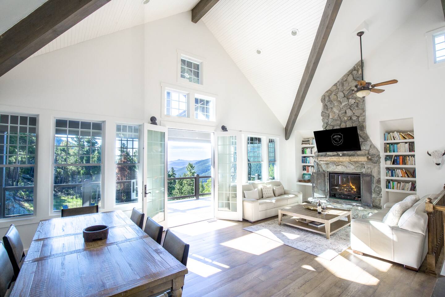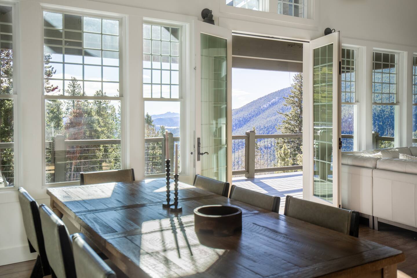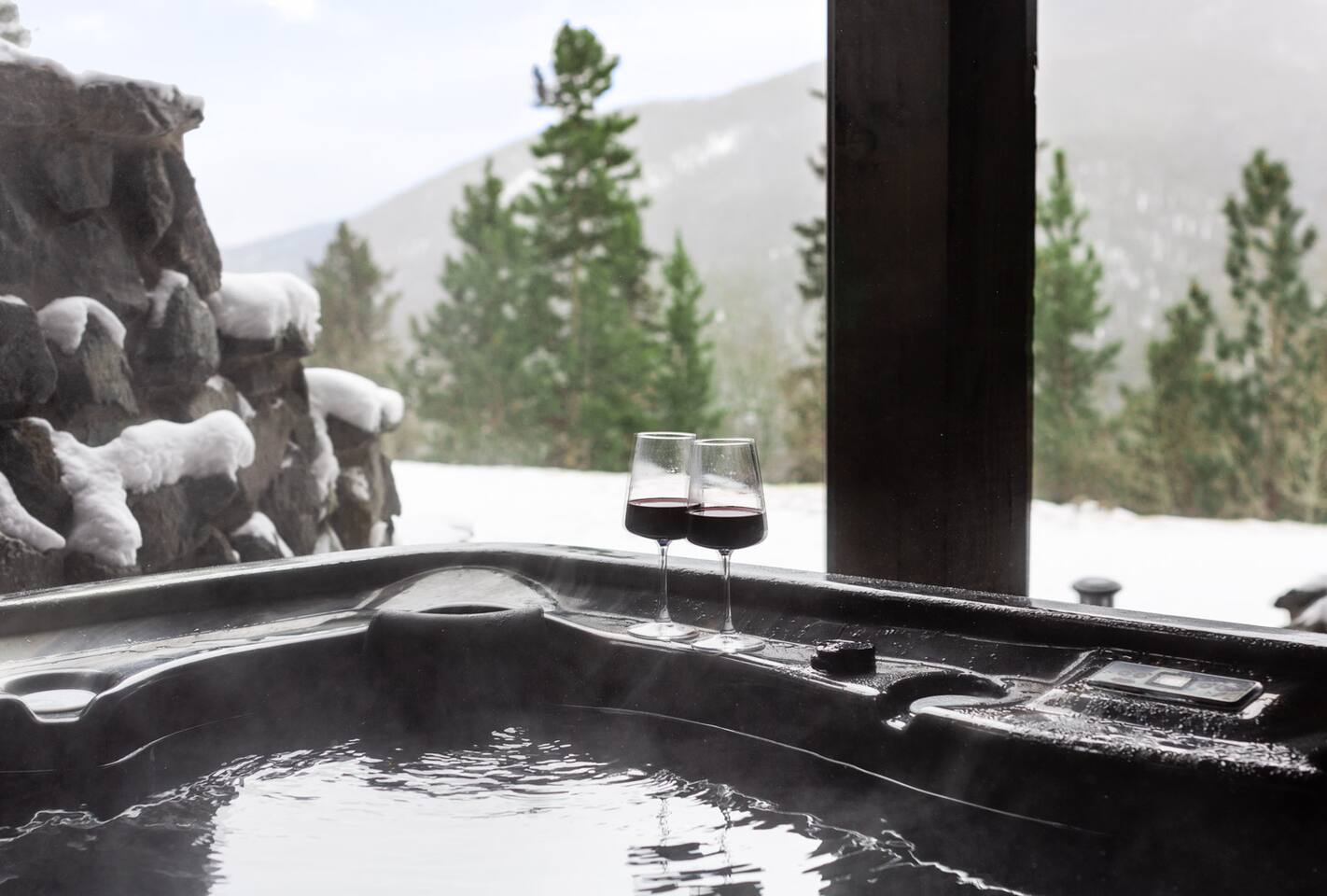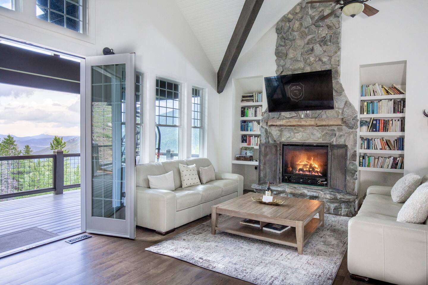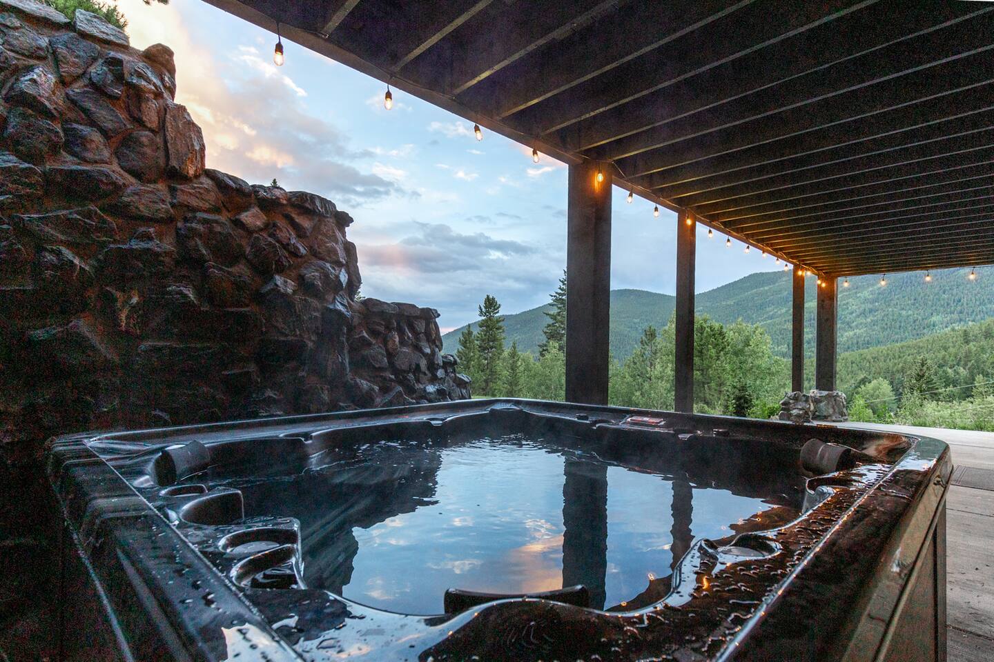 idyllic stay in Evergreen, Colorado with views, cozy fireplaces, and luxe saltwater hot tub