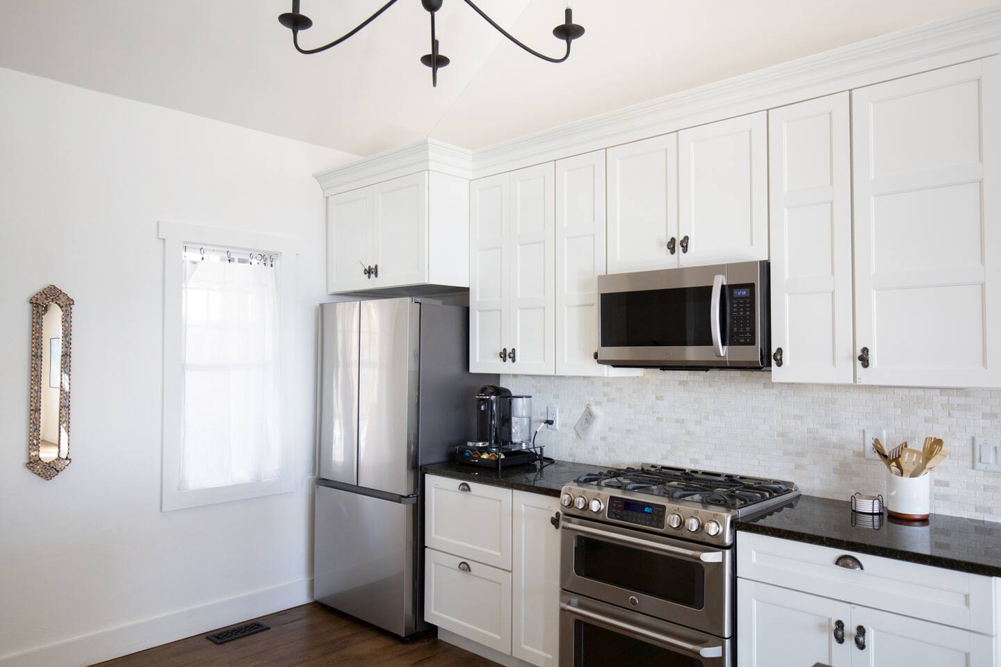 -Guests have access and full privacy of the entire house including the double private backyard decks with mountain views. Several closets are locked for owner use only. A detached garage located 20 feet in front of the house is not included in this listing, including a garage studio suite located above the garage. The garage suite may be owner-occupied during your stay.